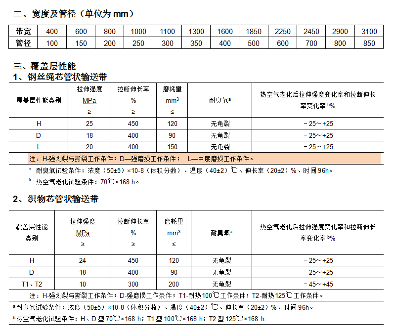 管狀輸送帶是以芯體(織物芯、鋼絲繩等)為骨架,以高彈性、高耐磨、高強力橡膠為工作面組成的新型運輸產品,主要用于輸送粉狀、顆粒狀等易污染環境的物料。工作時膠帶由平面漸變成U型,最后成為管狀,將物料包住,實現封閉輸送。